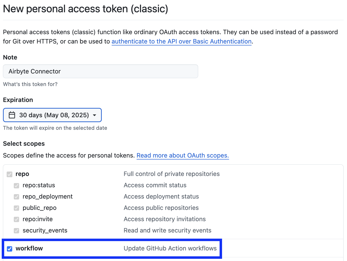 In order to contribute a new connector from the Airbyte UI, you'll need to obtain your GitHub Personal Access Token. This will allow your GitHub user to author the contribution.
